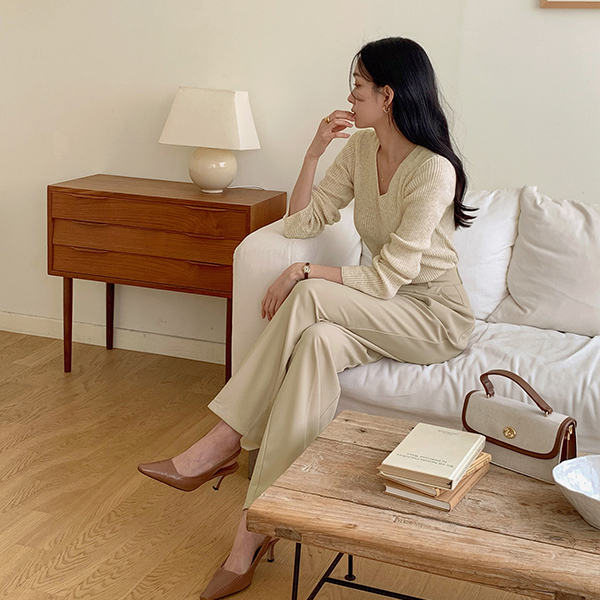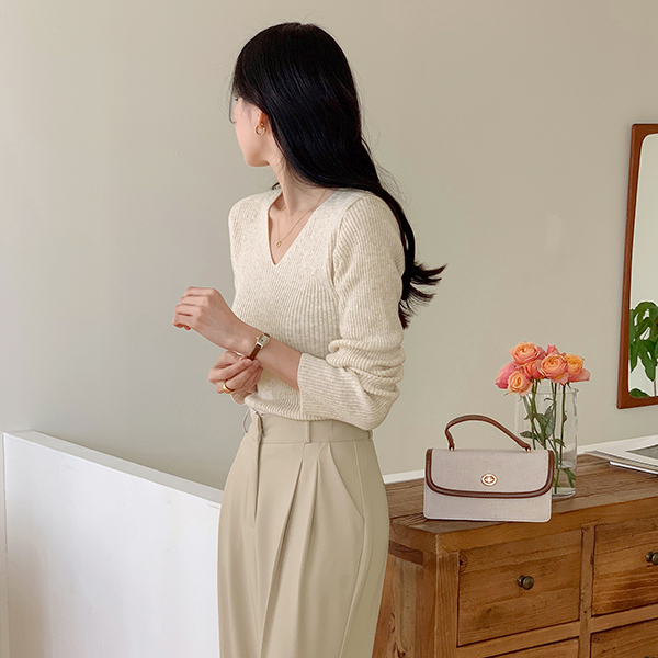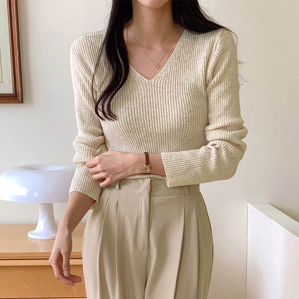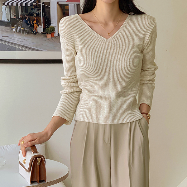 漂亮的版型 双V领 条绒 针织衫