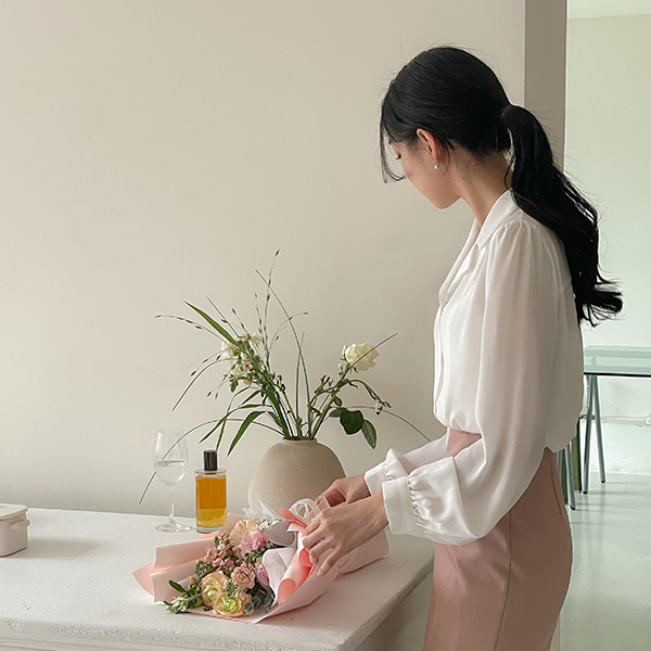 基本 修身 领子 罩衫