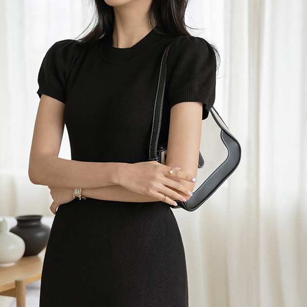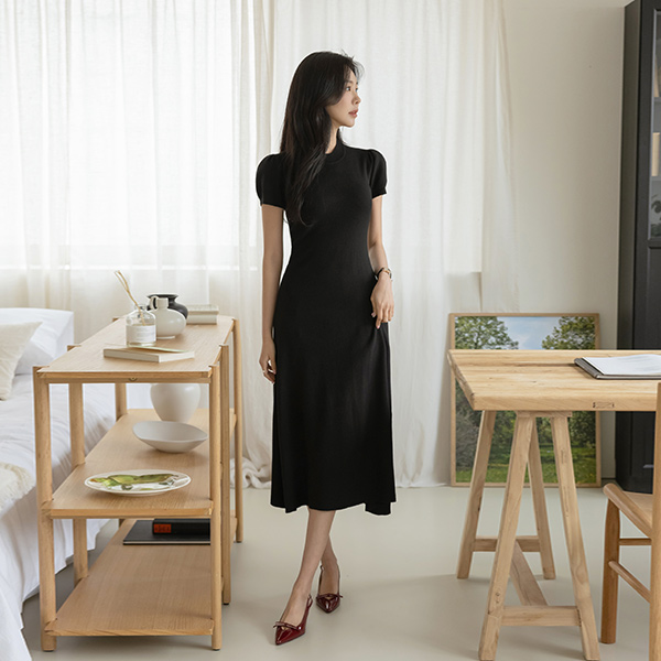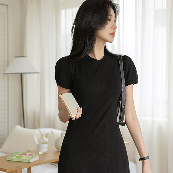 可爱 泡泡袖 A字型 长款 针织衫 连衣裙