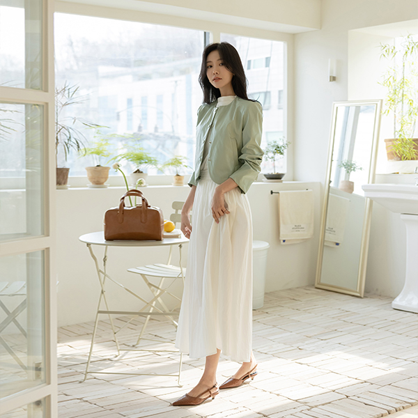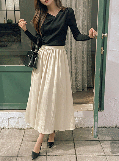 可爱 褶皱 褶皱 后侧松紧带 A字型 长款 裙子