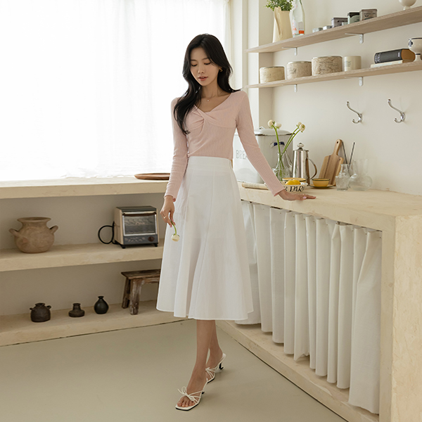 玫瑰色 扭曲 领线 点缀 T恤衫