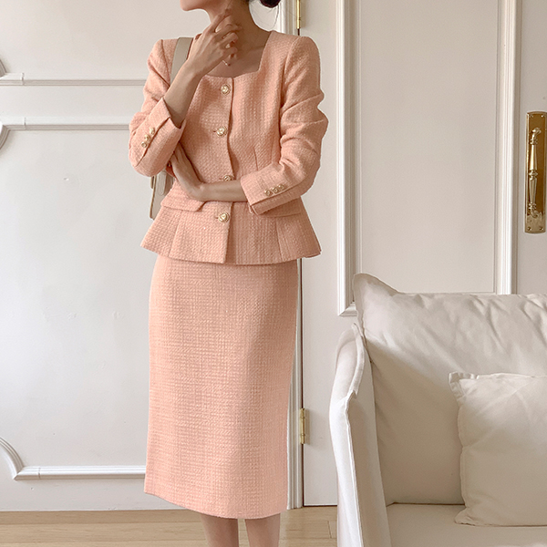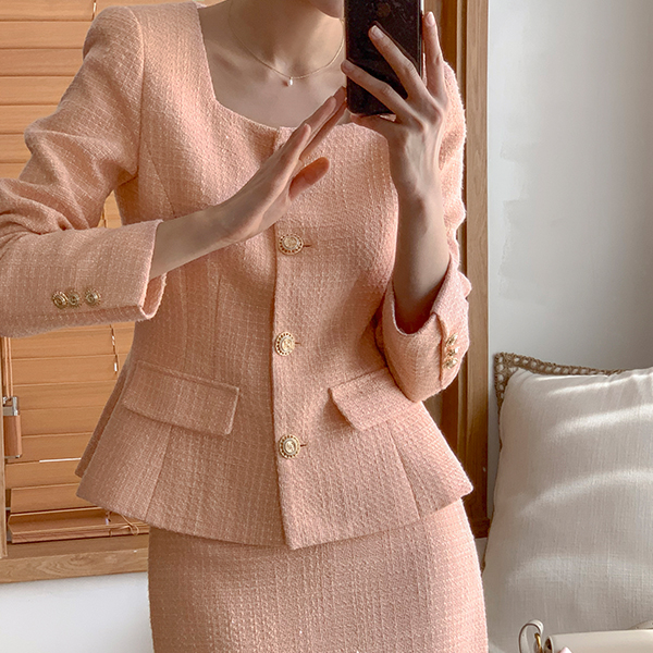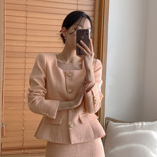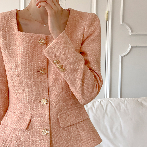 델리체 方领 黄金 扣子 粗呢 夹克