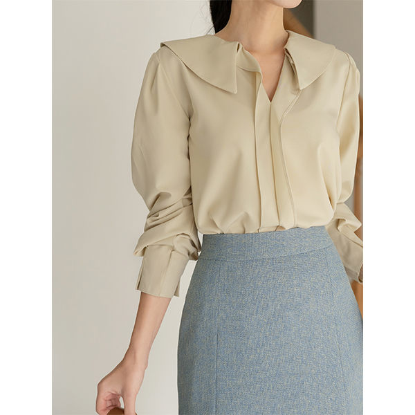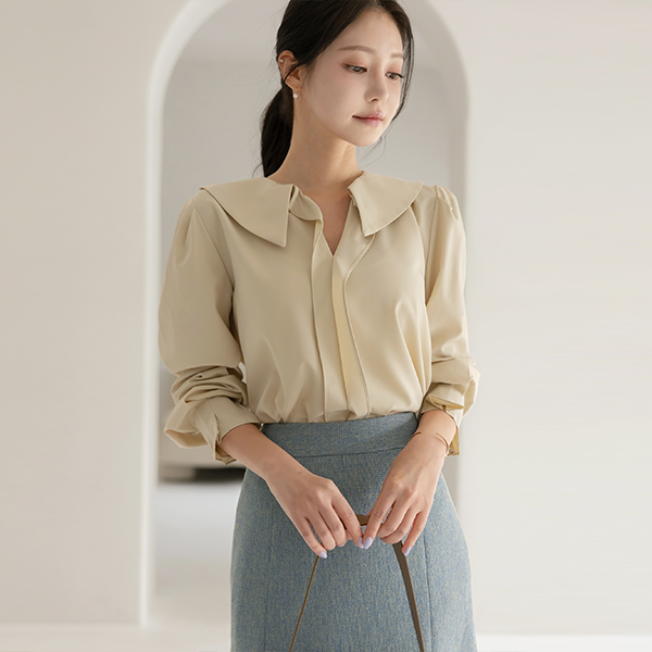 浪漫 平底鞋 领子 泡泡袖 袖 罩衫
