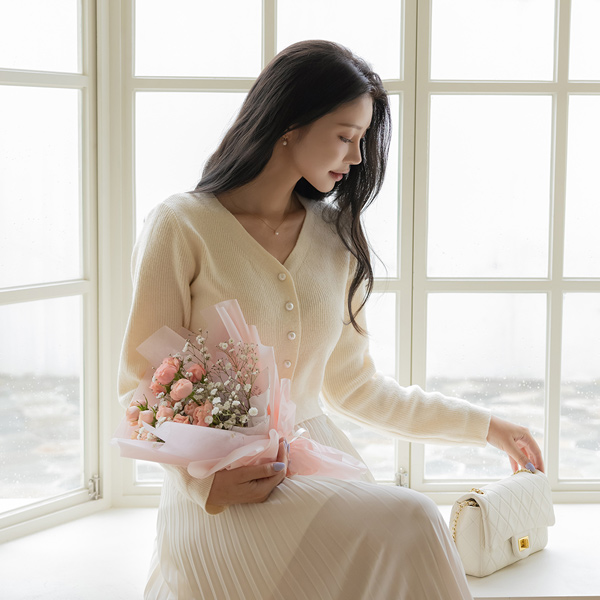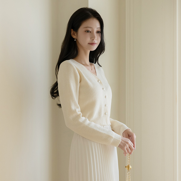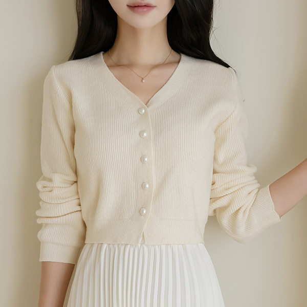 V字领 珍珠 扣子 7分裤 针织衫 开衫