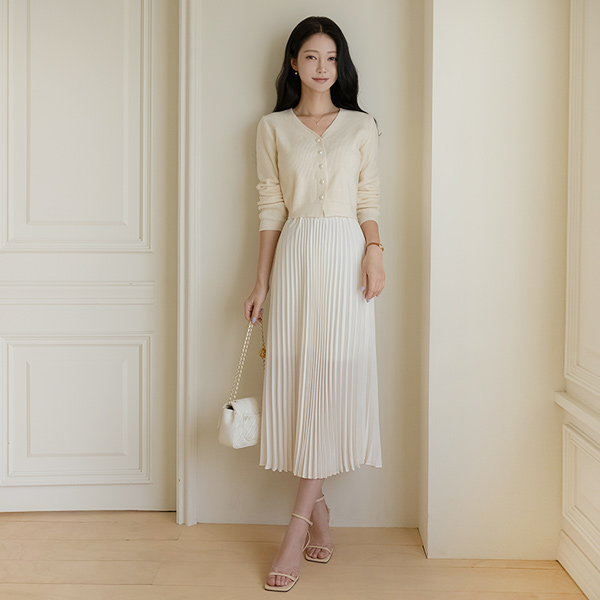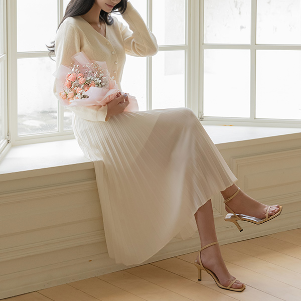 日常 잔플리츠 松紧带 长款 裙子
