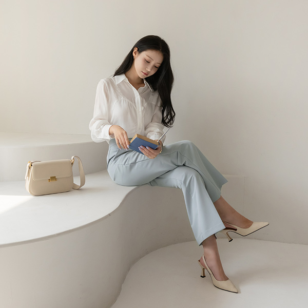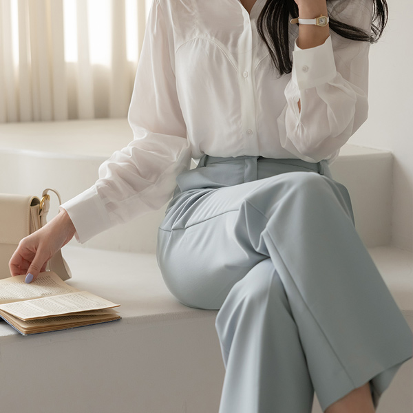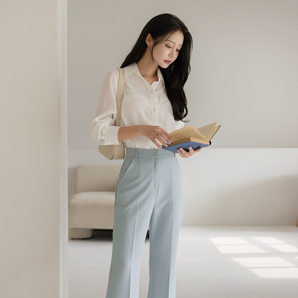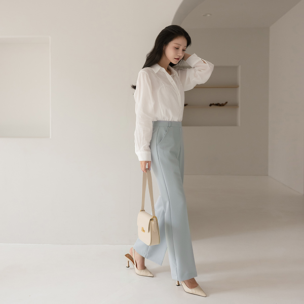 柔色 颜色 高腰 喇叭 宽松长裤