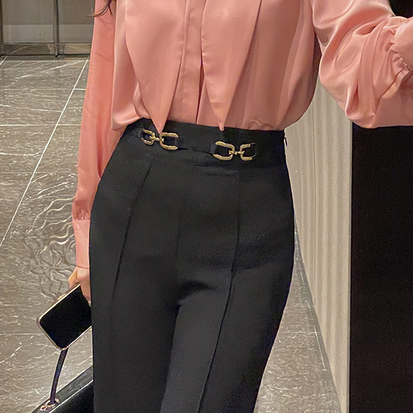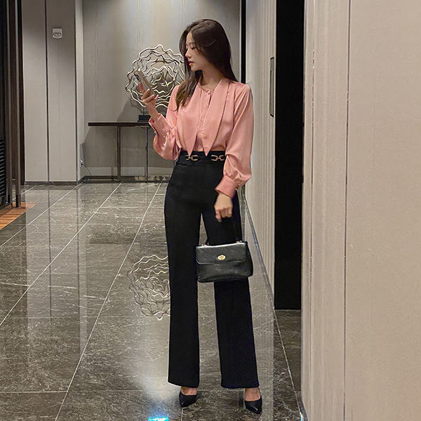 有光泽 抹胸 珍珠 扣子 绸缎 领带 罩衫