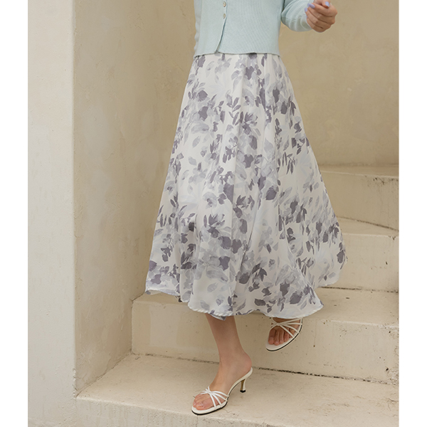 纯正 叶子 印染 后腰松紧带 喇叭 裙子