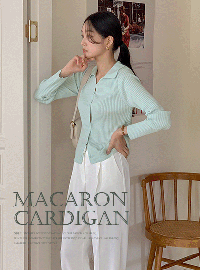 Macaron 颜色 条绒 领子 针织衫 开衫