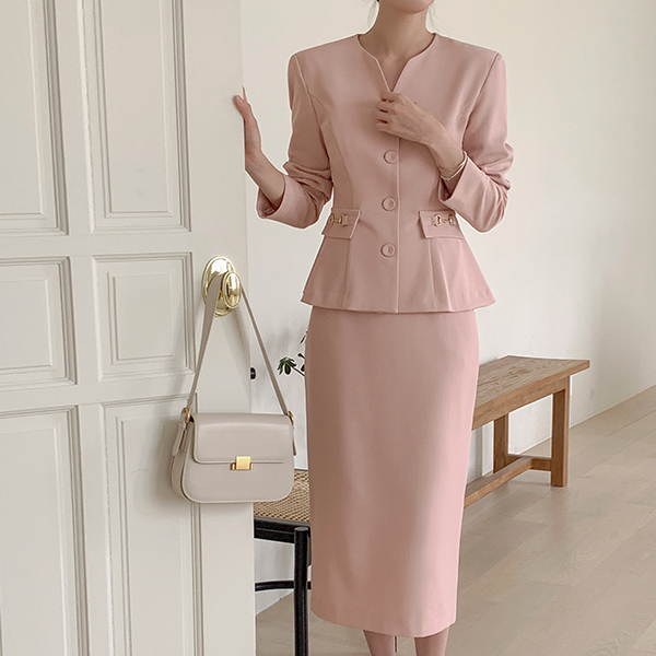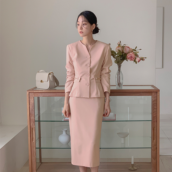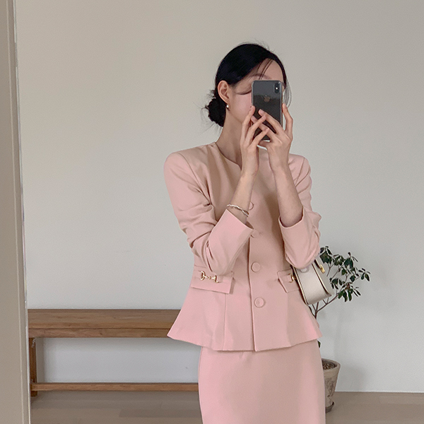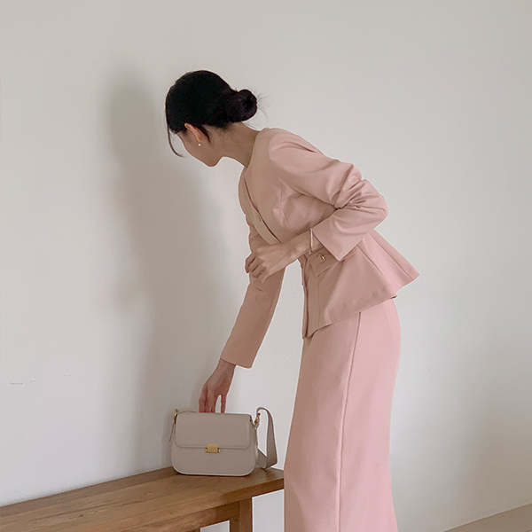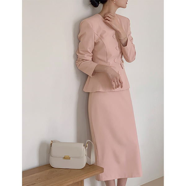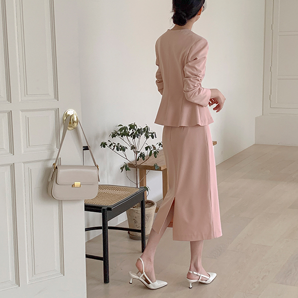 优雅 荷叶边 夹克&裙子 SET