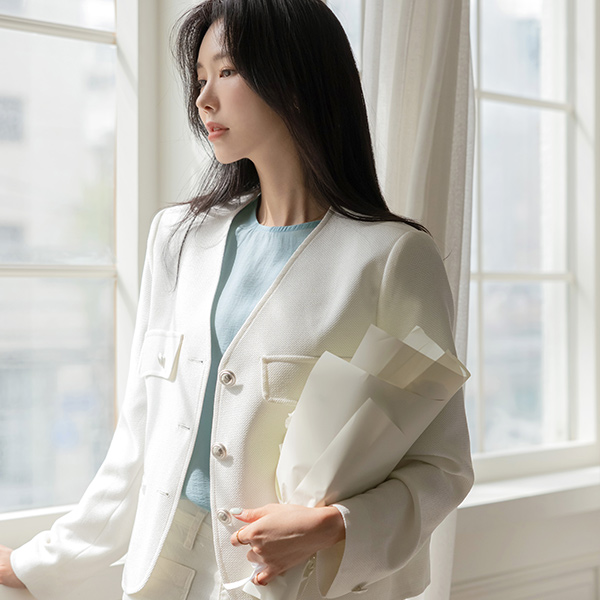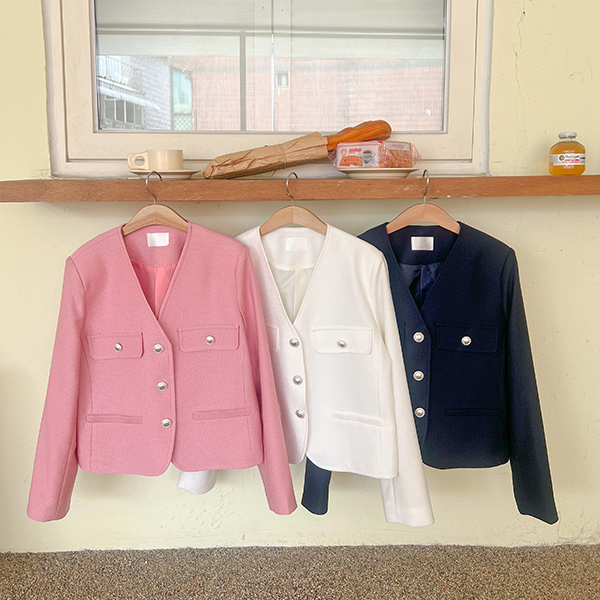 清爽 情调 最少 V字领 粗呢 夹克