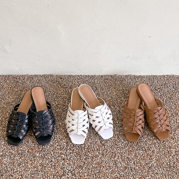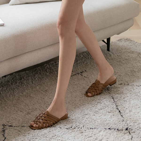 牛皮 人字呢 编织的 凉鞋 拖鞋