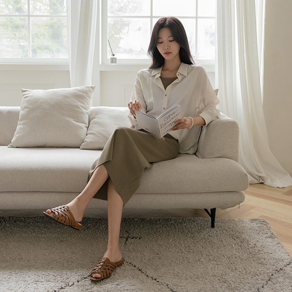 라운지 底端 抽绳 衬衫