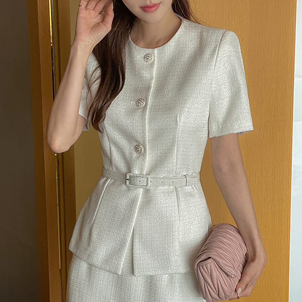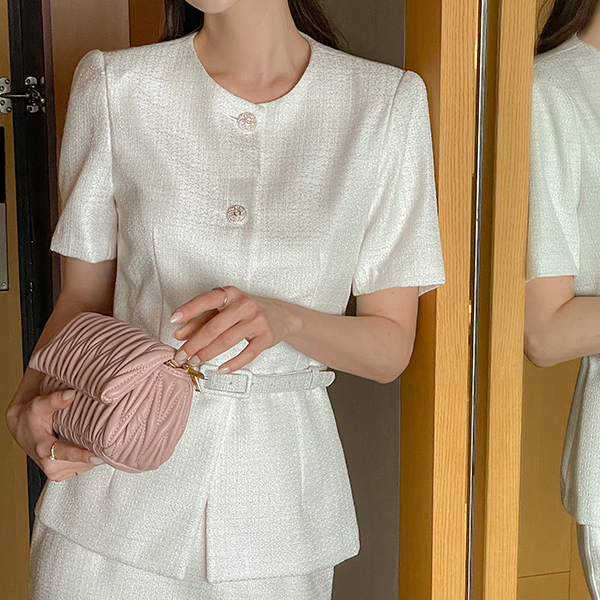 瑞尔 闪亮 粗呢 荷叶边 Set-up 夹克