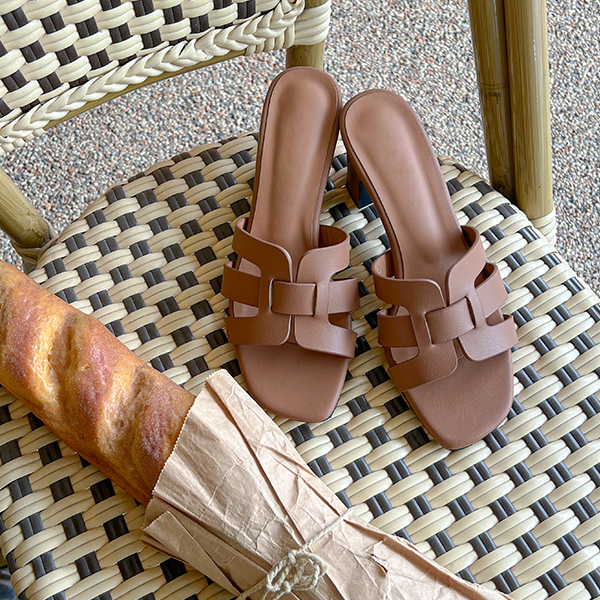 简单 日常 牛皮 拖鞋 高跟鞋