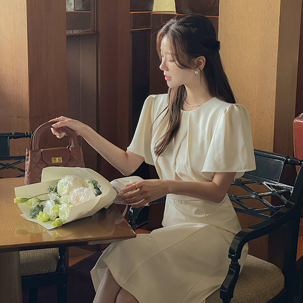 浪漫 褶皱 핀탁 飞袖 美人鱼 连衣裙