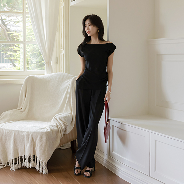 海军 领子 斯利姆 线条 泡泡袖 罩衫