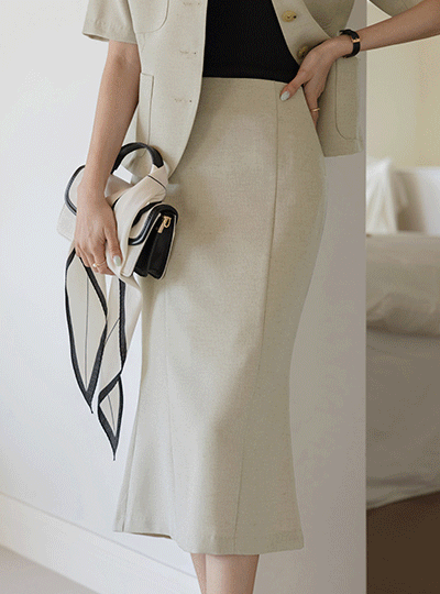 루디 开叉 美人鱼 亚麻 粗呢 裙子