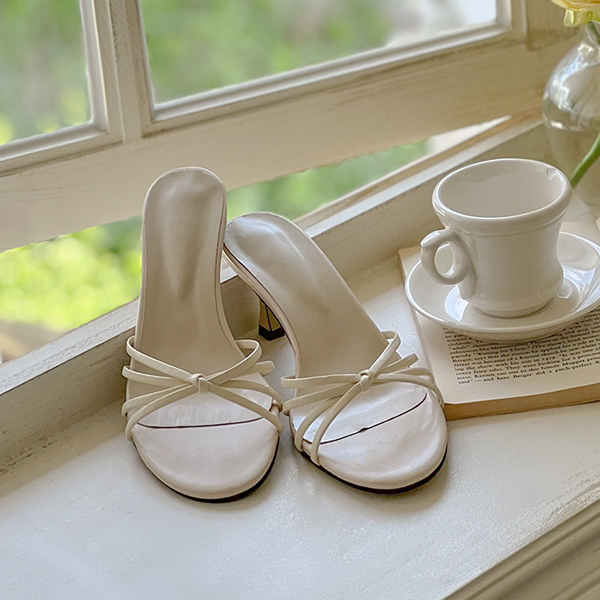 圆领 苗条 皮条/束带 拖鞋 高跟鞋