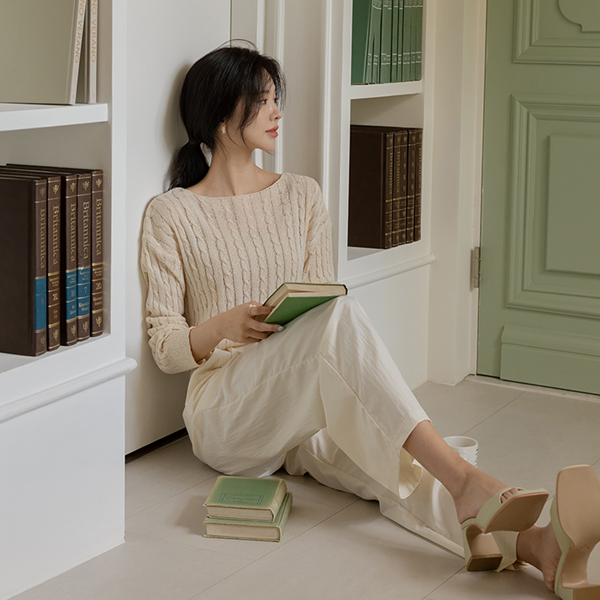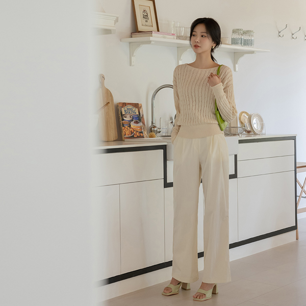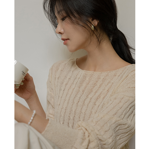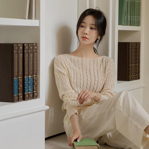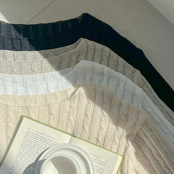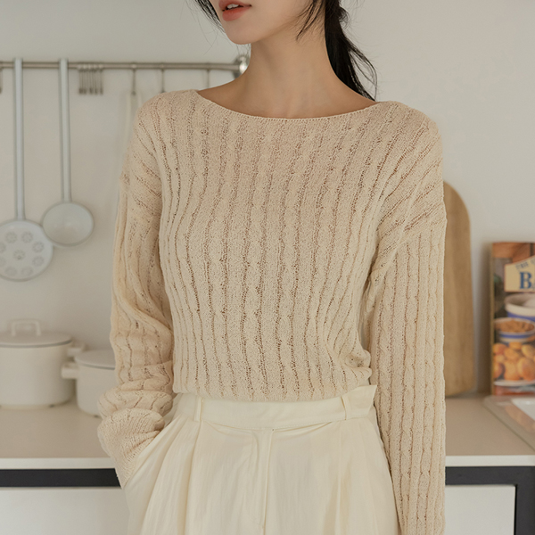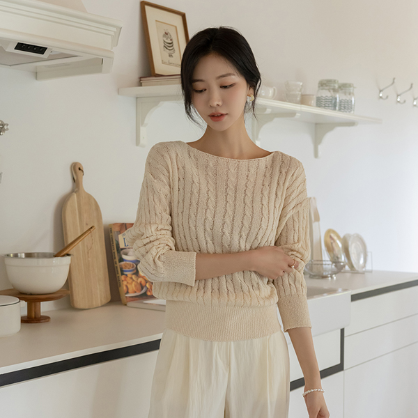 苗条 船形领 缆绳 图案 夏天 针织衫