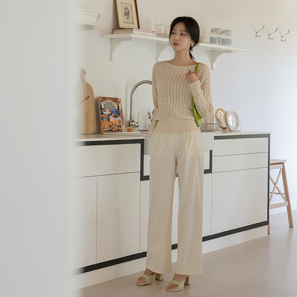 苗条 船形领 缆绳 图案 夏天 针织衫