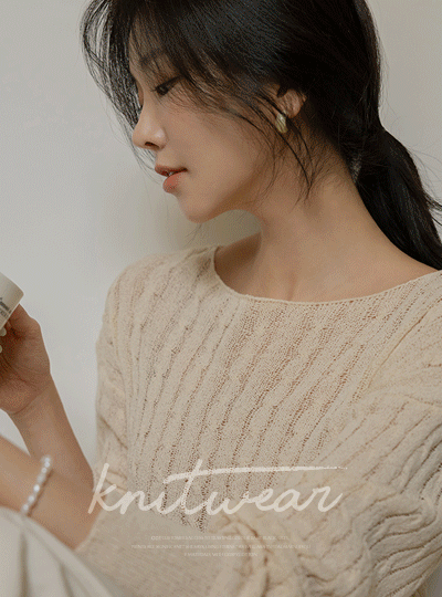 苗条 船形领 缆绳 图案 夏天 针织衫