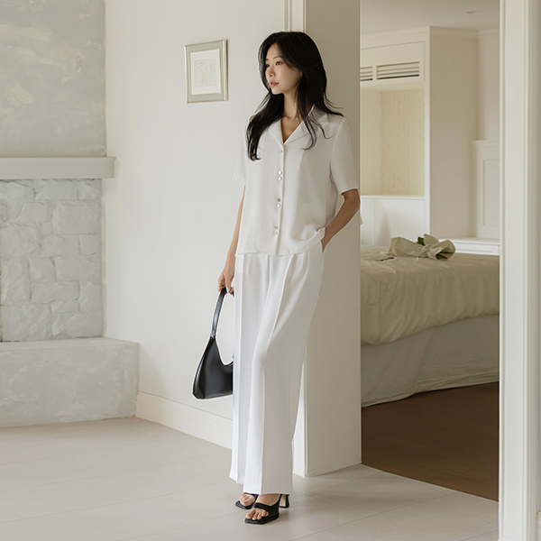 밀러 软绵绵软的 细褶 Set-up 宽松 宽松长裤