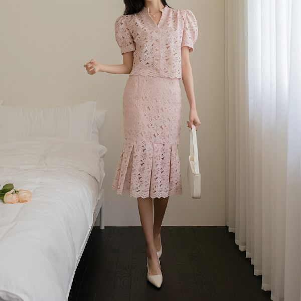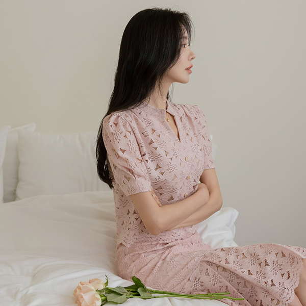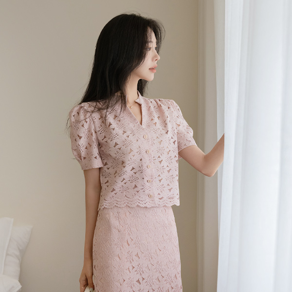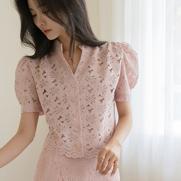 花园 泡泡袖 敝领 蕾丝 罩衫