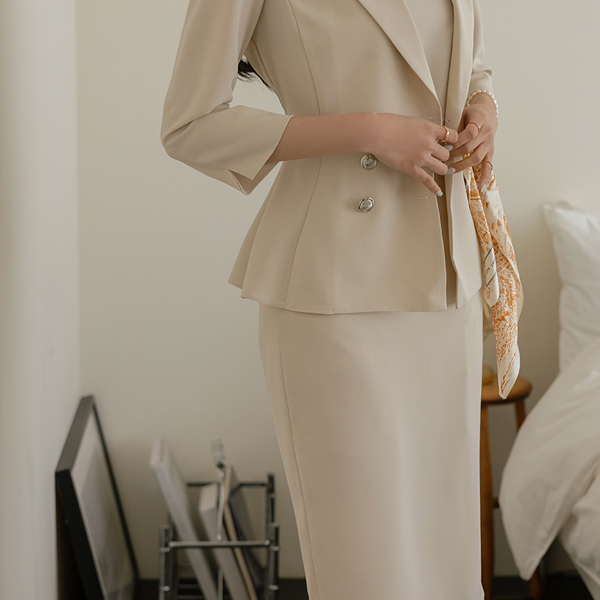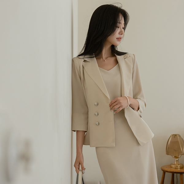 粉 双 扣子 Set-up 荷叶边 夹克