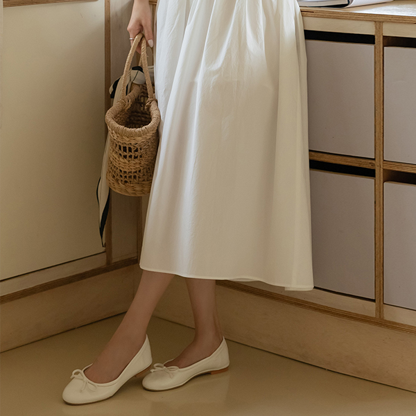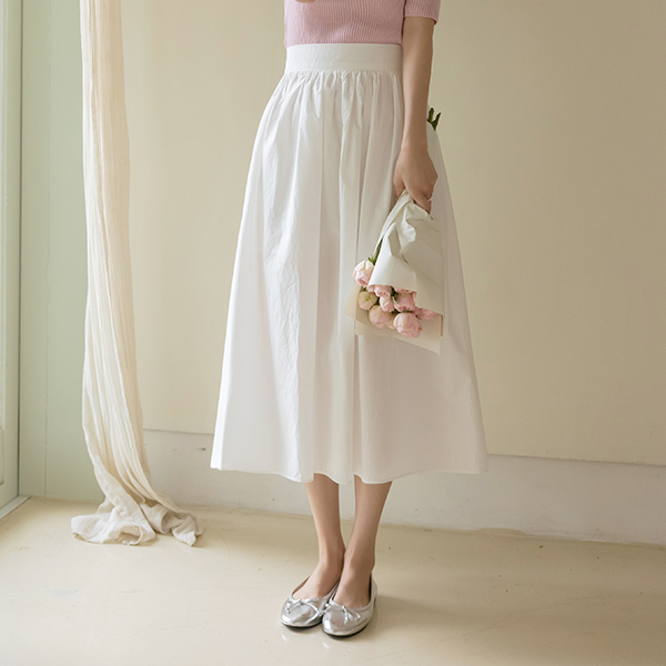 May 褶皱 A字型 后侧松紧带 长款 棉 裙子