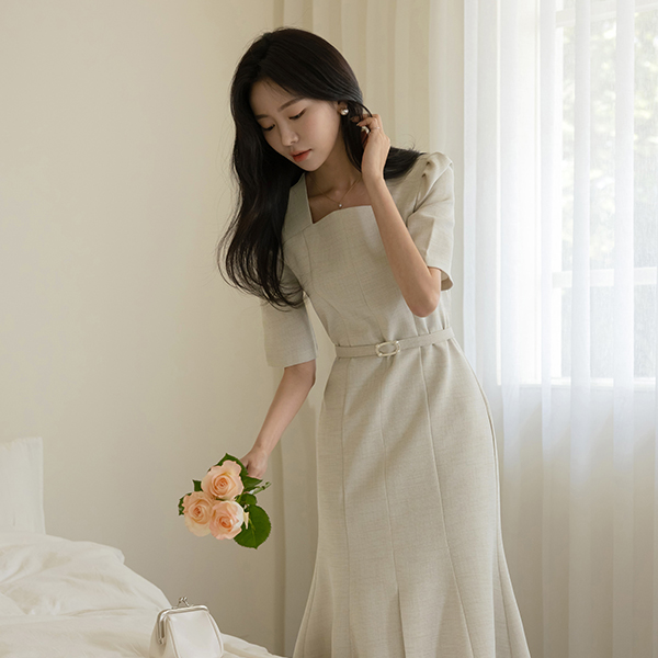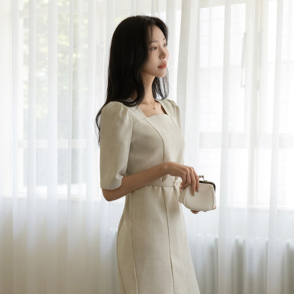 浪漫 方领 夏天 粗呢 连衣裙