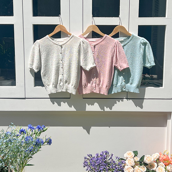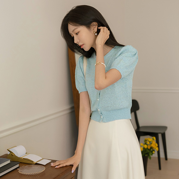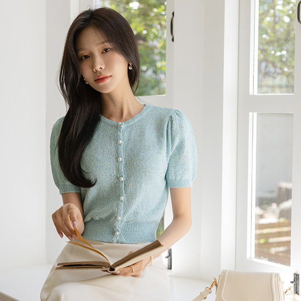 블리 泡泡袖 肩膀 珍珠 扣子 针织衫 开衫