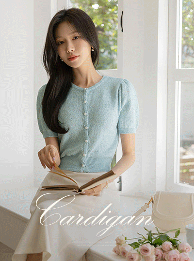 블리 泡泡袖 肩膀 珍珠 扣子 针织衫 开衫