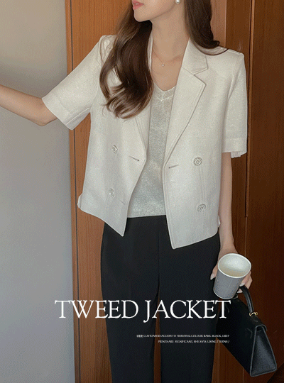 헤이즐 双 扣子 后侧松紧带 粗呢 夹克