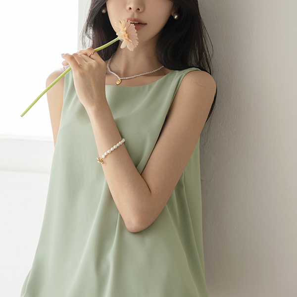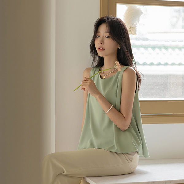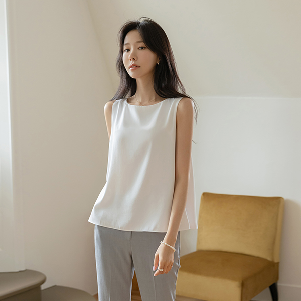 苗条 领 훌 基本 背心 罩衫