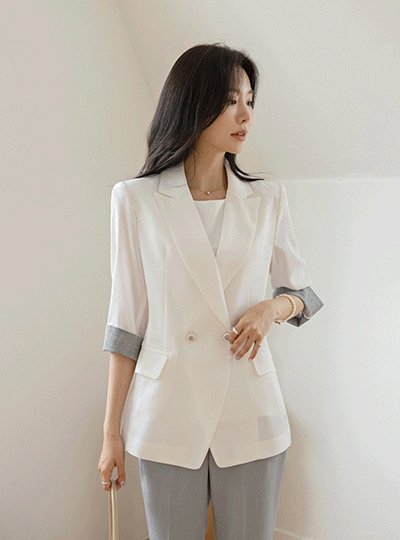 摩登 风格 配色 袖 卷边 夏天 夹克