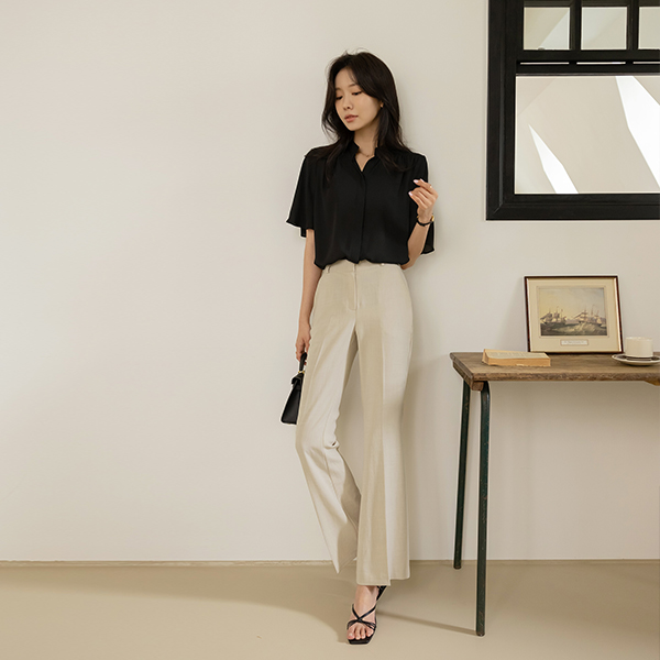 软绵绵软的 凉爽 后侧松紧带 喇叭 宽松长裤