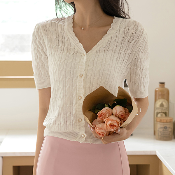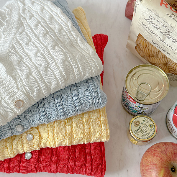红宝石 缆绳 물결 线条 针织衫 开衫