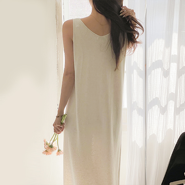 苗条的 커버핏 长款 针织衫 V字领 背心 连衣裙