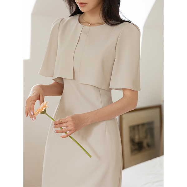 软绵绵软的 翅膀 袖 披肩 风格 连衣裙