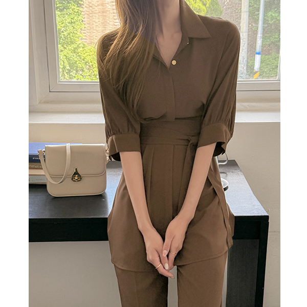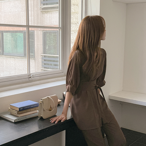 宽松 腰带 点缀 宽松 罩衫
