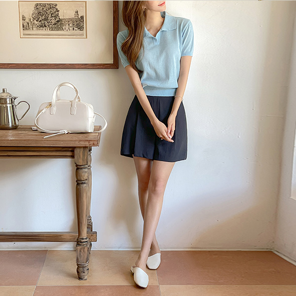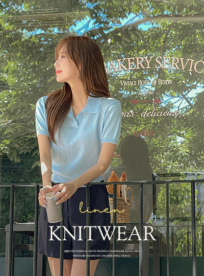 코어블 翻领 亚麻 혼방 短袖 针织衫