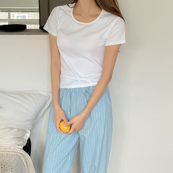 日常 픽 莫代尔 弹力 圆领 T恤衫