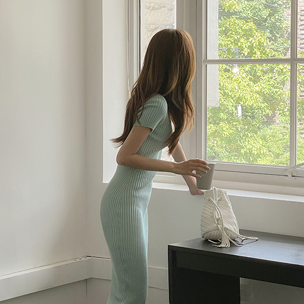 리버 扣子 修身 条绒 针织衫 连衣裙