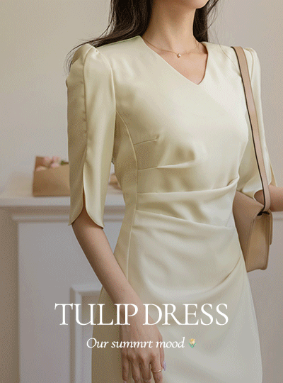 优雅 褶皱 郁金香 袖 连衣裙