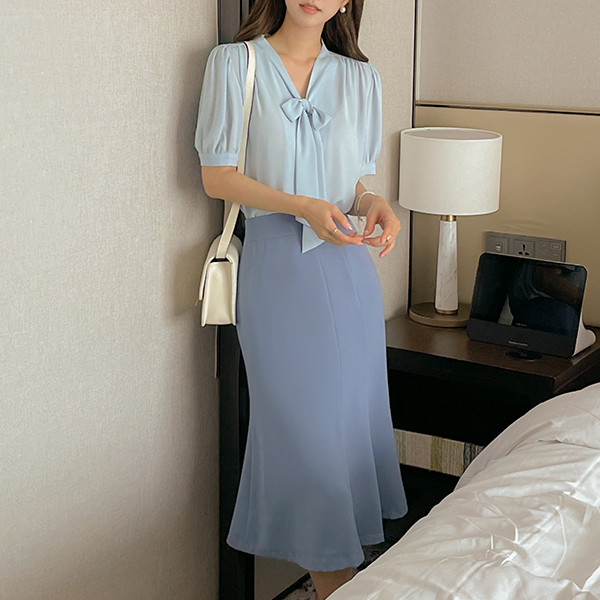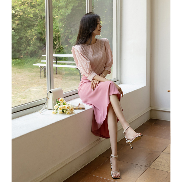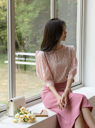 浪漫 华夫格 织物 泡泡袖 罩衫