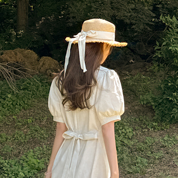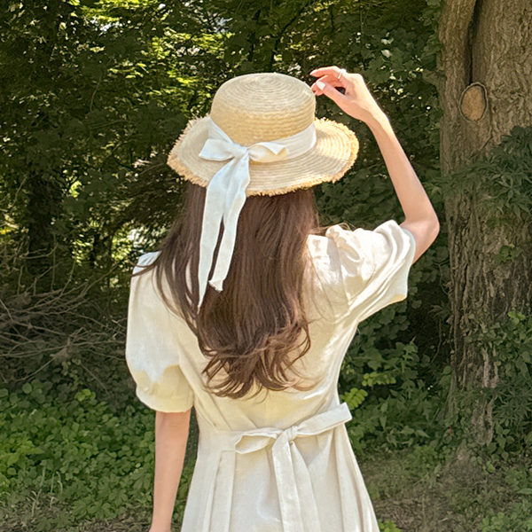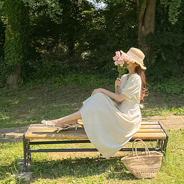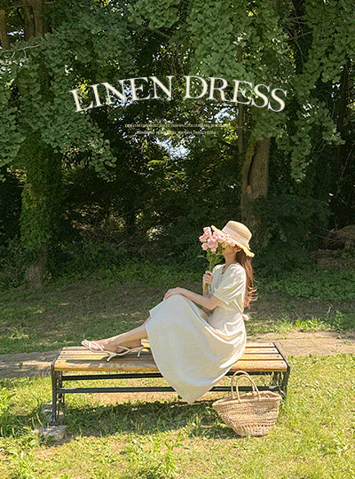 디어 亚麻 细褶 短袖 连衣裙