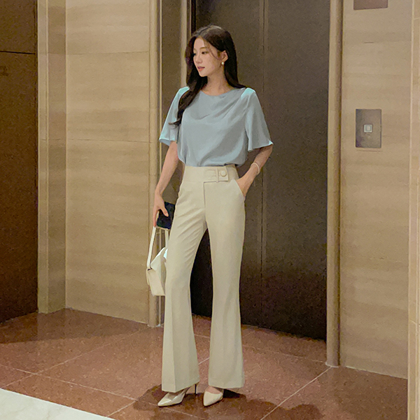 侧纽 扣带 装饰 弹力 喇叭 宽松长裤 Ⅲ