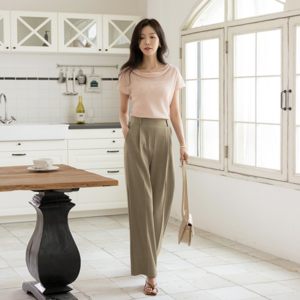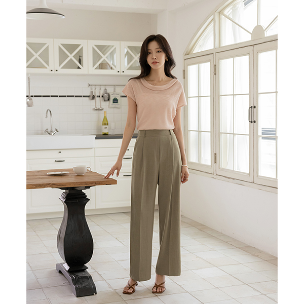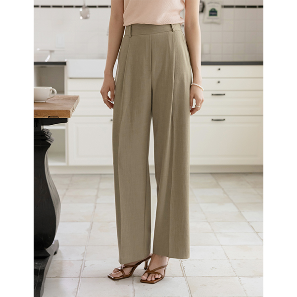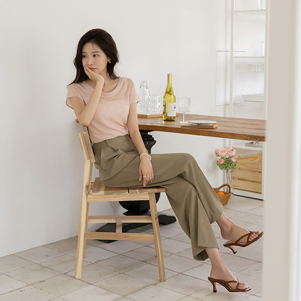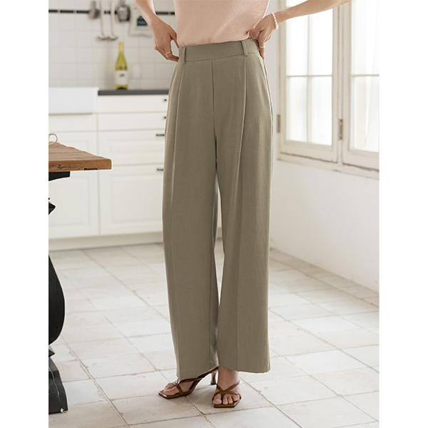 细褶 宽松 夏天 亚麻 后侧松紧带 宽松长裤