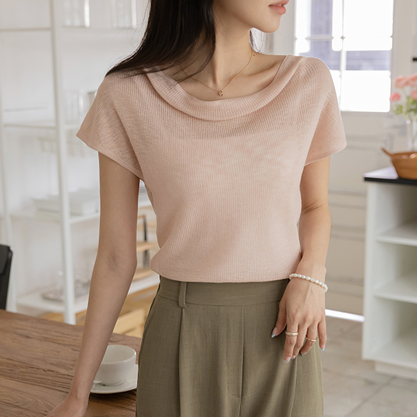 维纳斯 褶皱 堆领 帽檐袖 针织衫